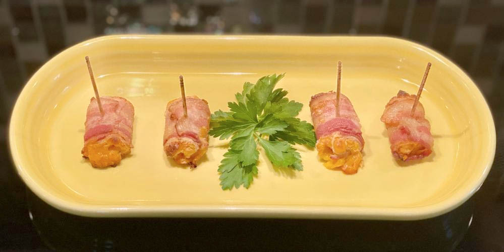 10. Bake in a 375° F. oven for 20-25 minutes or until bacon is done and nicely browned. (CAN BE FROZEN AT THIS POINT AND PLACED IN A SEALED CONTAINER.) -