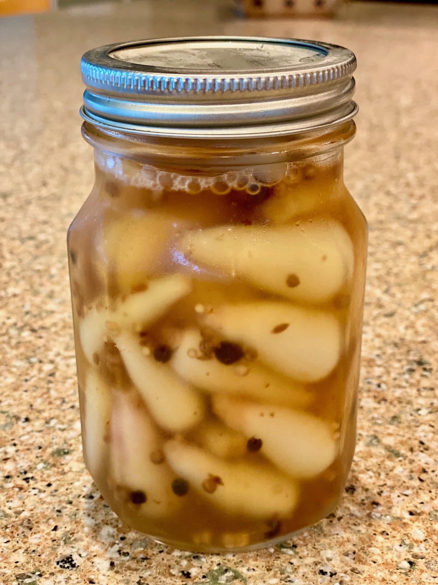My recipe is actually a compilation of several different recipes. I settled on this recipe because it is the closest to what I remember to the taste of the brine my grandmother used when pickling.